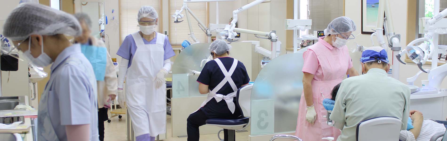 昔から通っていただいている患者様が多く、スタッフを含めてアットホームで温かい雰囲気が自慢です。炭酸ガスレーザー・口腔外バキュームなどの医療機器を完備しており、安全・安心な治療を提供するため、衛生面の配慮を徹底して行っています。